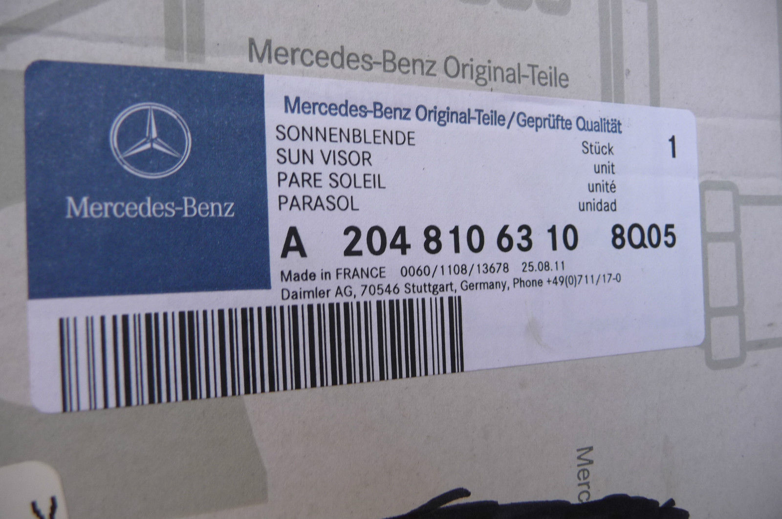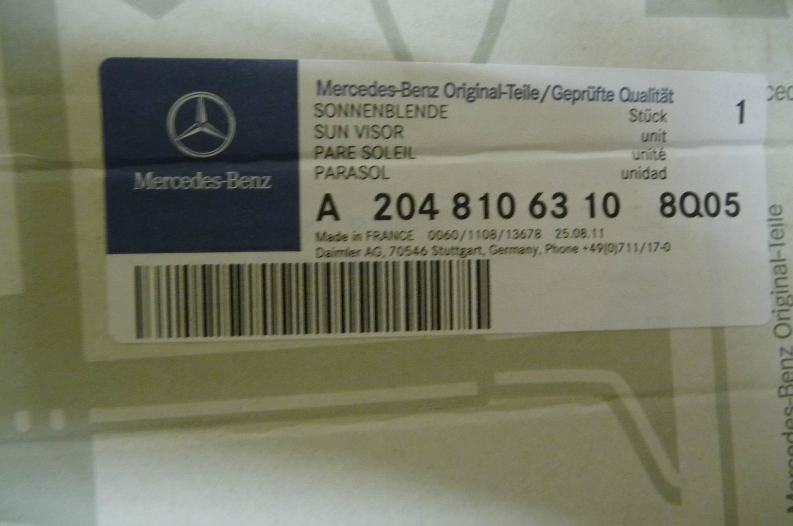 Mercedes Benz GLK350 Front Left LH Driver Sun Visor A 2048106310 8Q05 OEM OE
