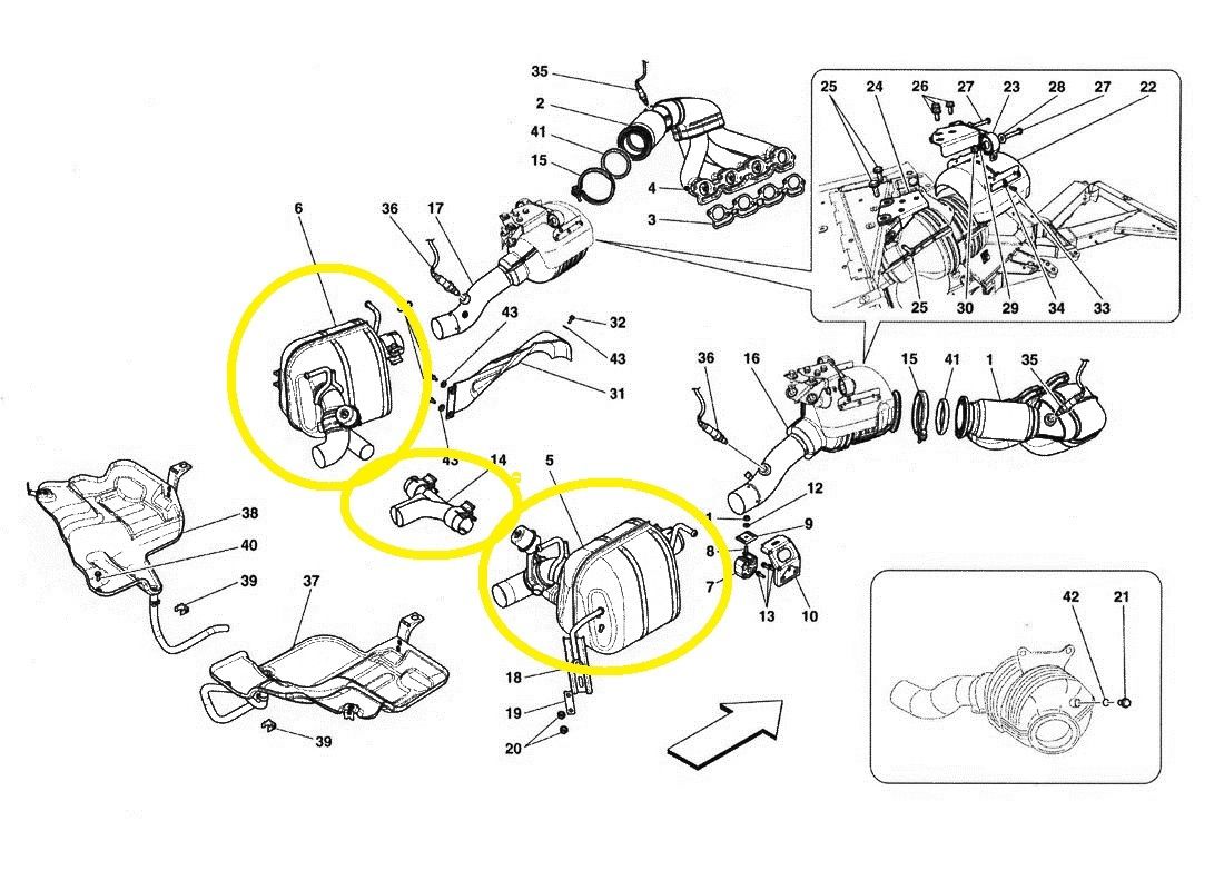 Ferrari 458 Italia Rear Exhaust Silencer Right and Left with Central Outlet Pipe OEM OE M