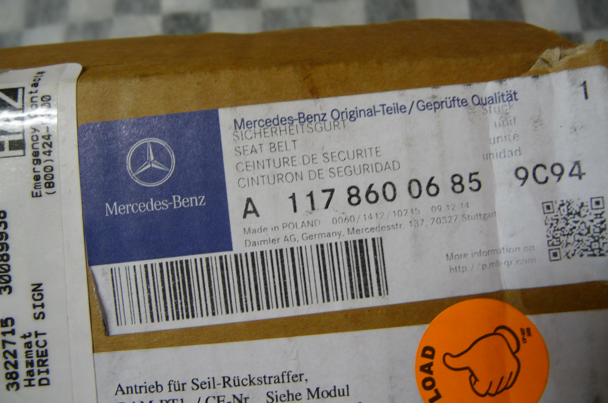 Mercedes Benz C117 W117 Rear Outer Seat Belt Lap Shoulder Belt Left side Right side NEW OEM