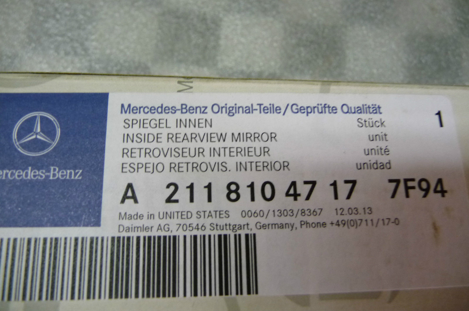 Part#: 2118104717 7F94 OEM OE
