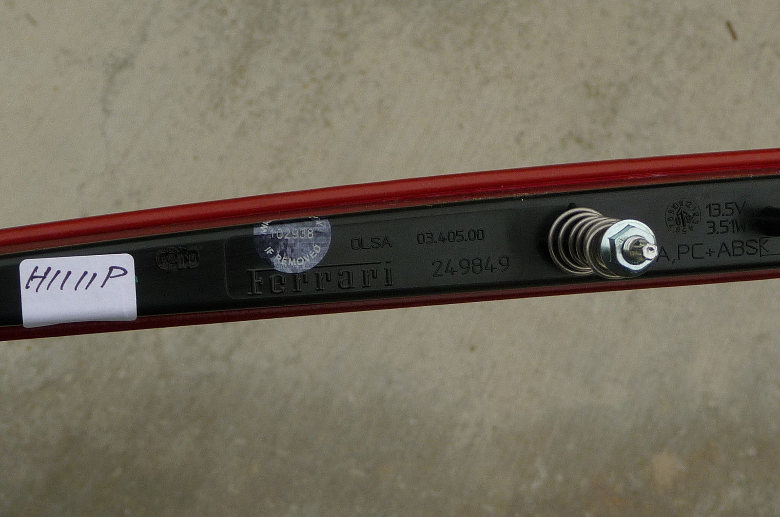 2009 Ferrari California Complete Additional Stop Part#: 249848 OEM OE Item Used, has some damages, broken glass