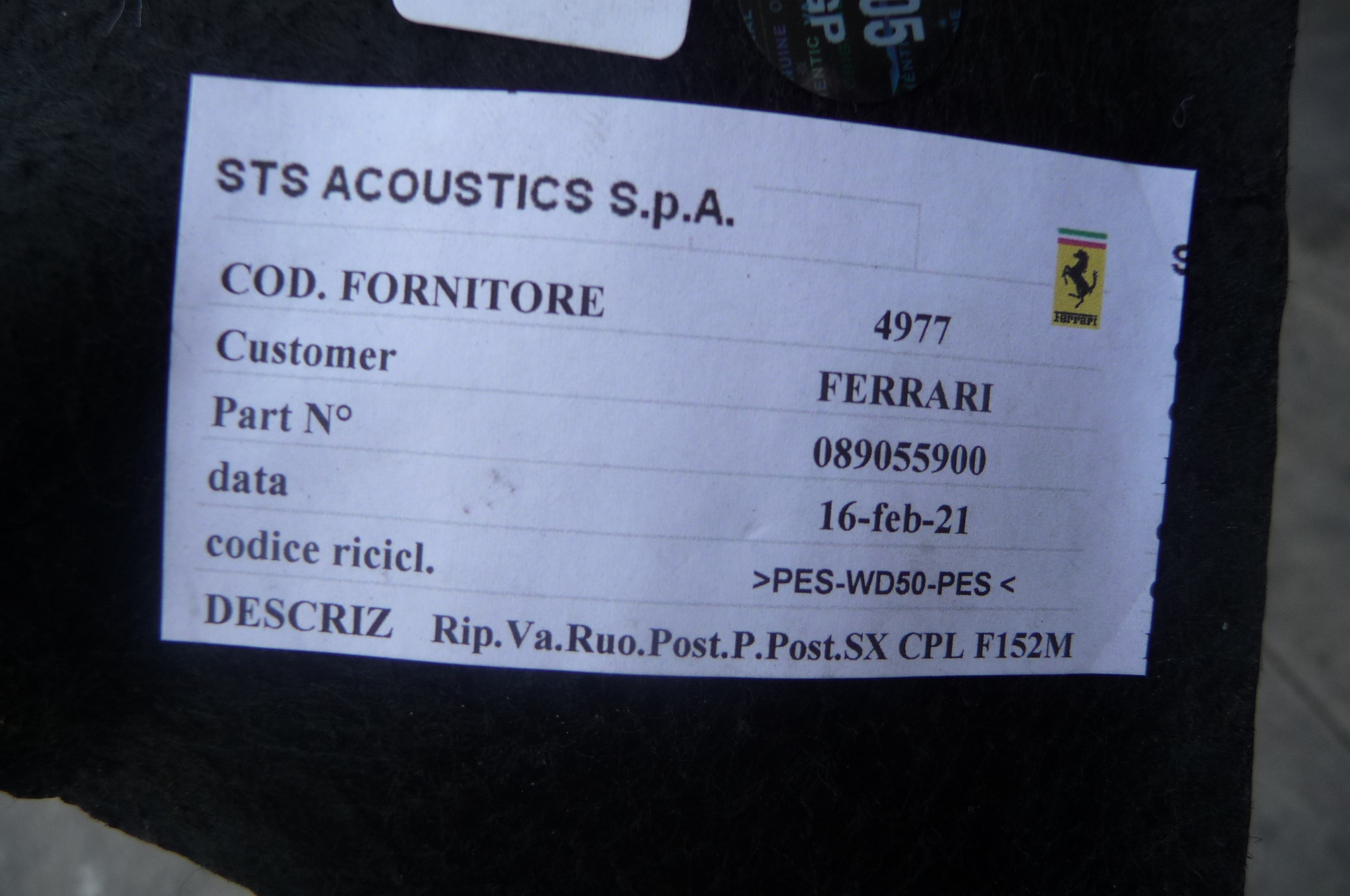 2017 2018 2019 2020 2021 2022 Ferrari 812 Superfast/GTS Rear Shield Acoustic Cover for Left Rear Wheel Bay