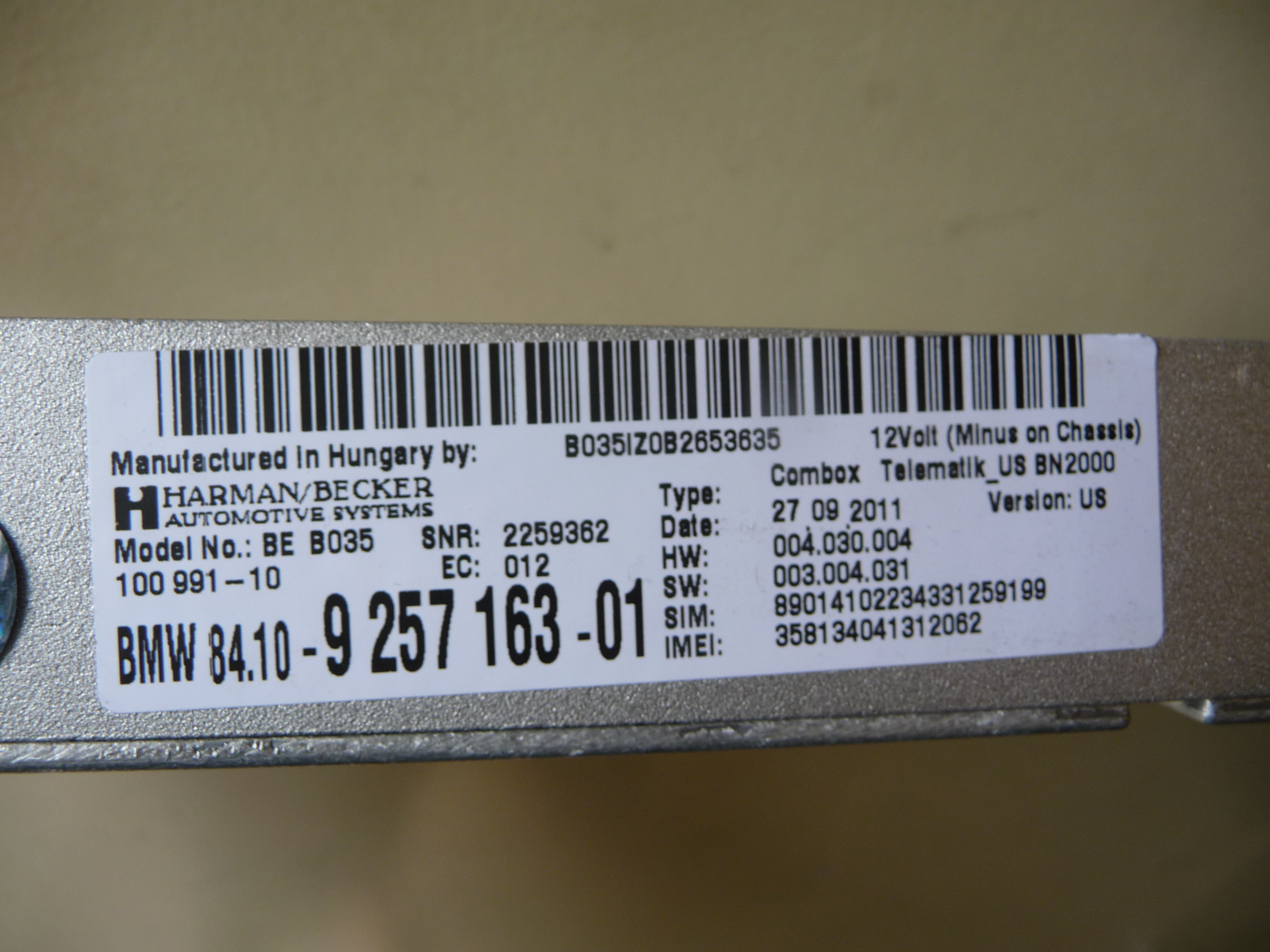 09-15 BMW 1 3 Series X1 X5 X6 Z4 Combox for Telematics 84109257163 9257163 OEM