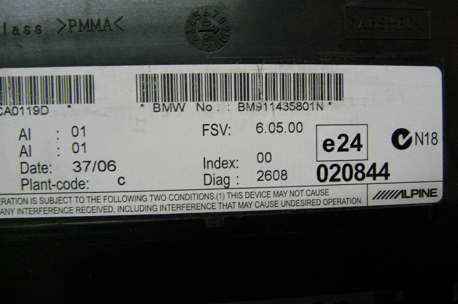 BMW 5 6 Series On-board Monitor 6,5" ALPINE 65829114358 OEM OE