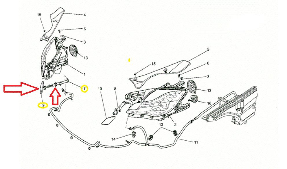 2014-2017 Maserati Quattroporte Right Telescopic Headlight Washer and Chrome Lid