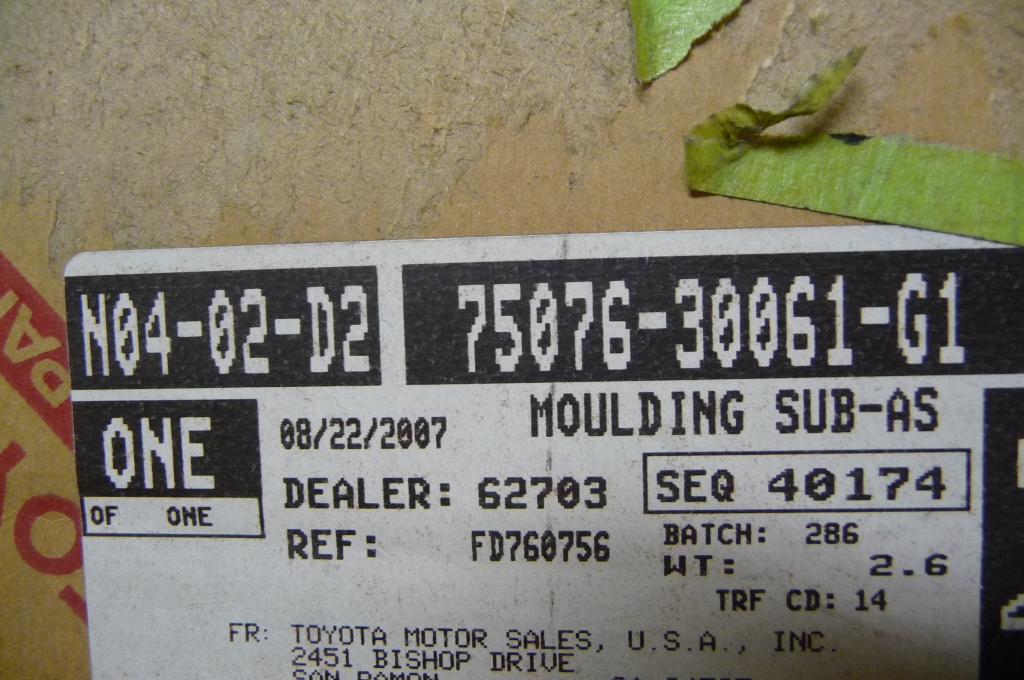 Part#: 7507630061G1; 75076-30061-G1; 7507630061