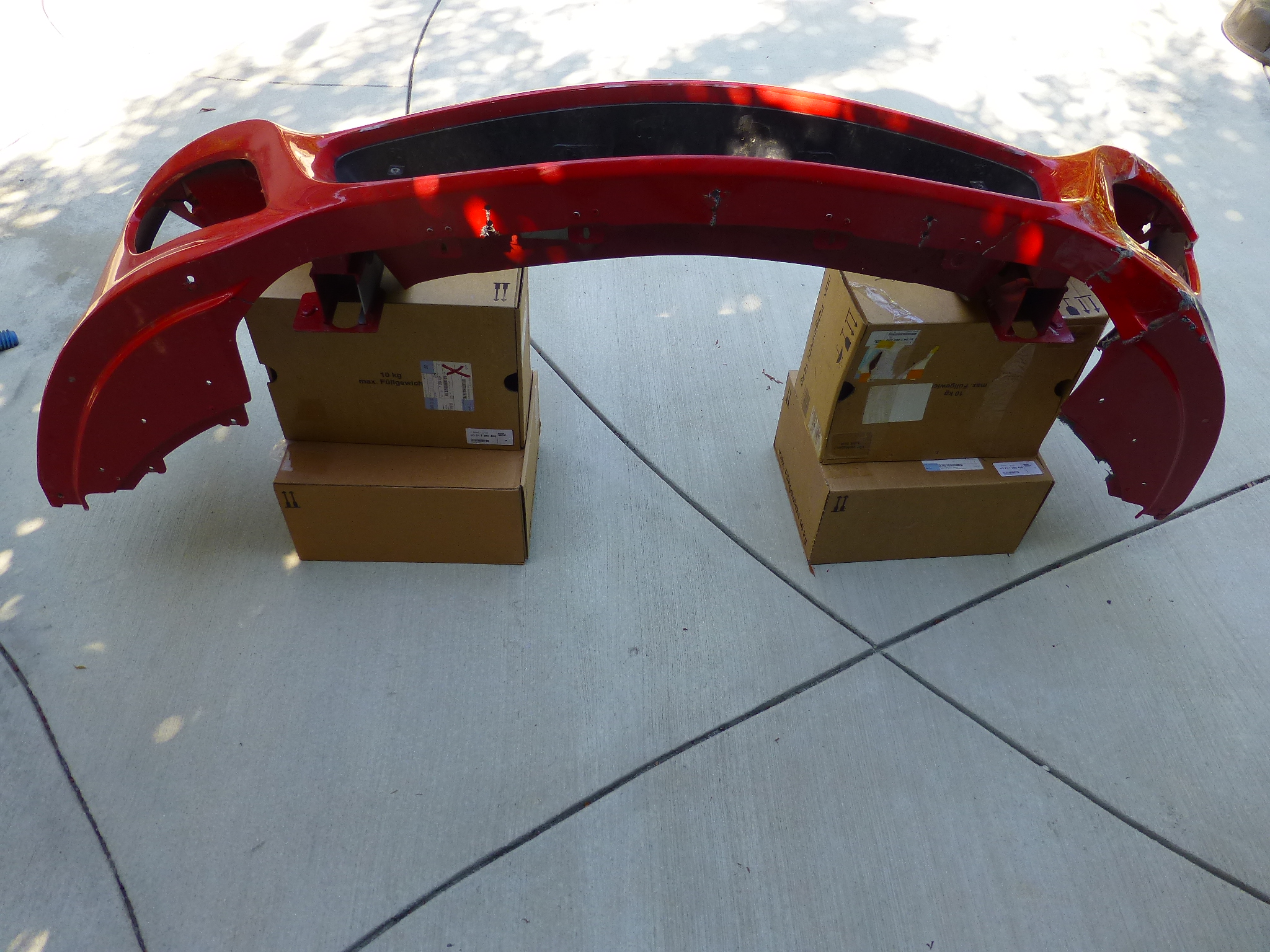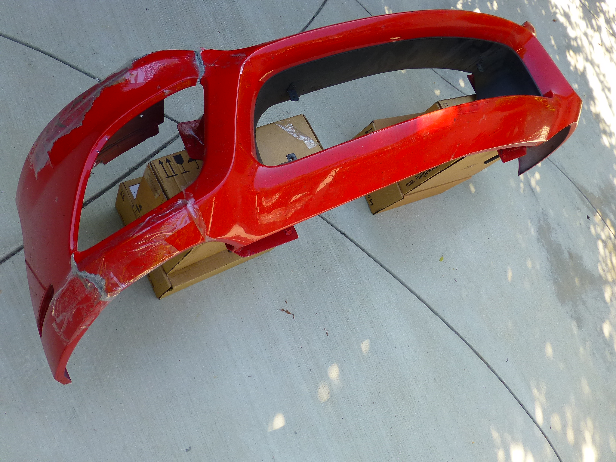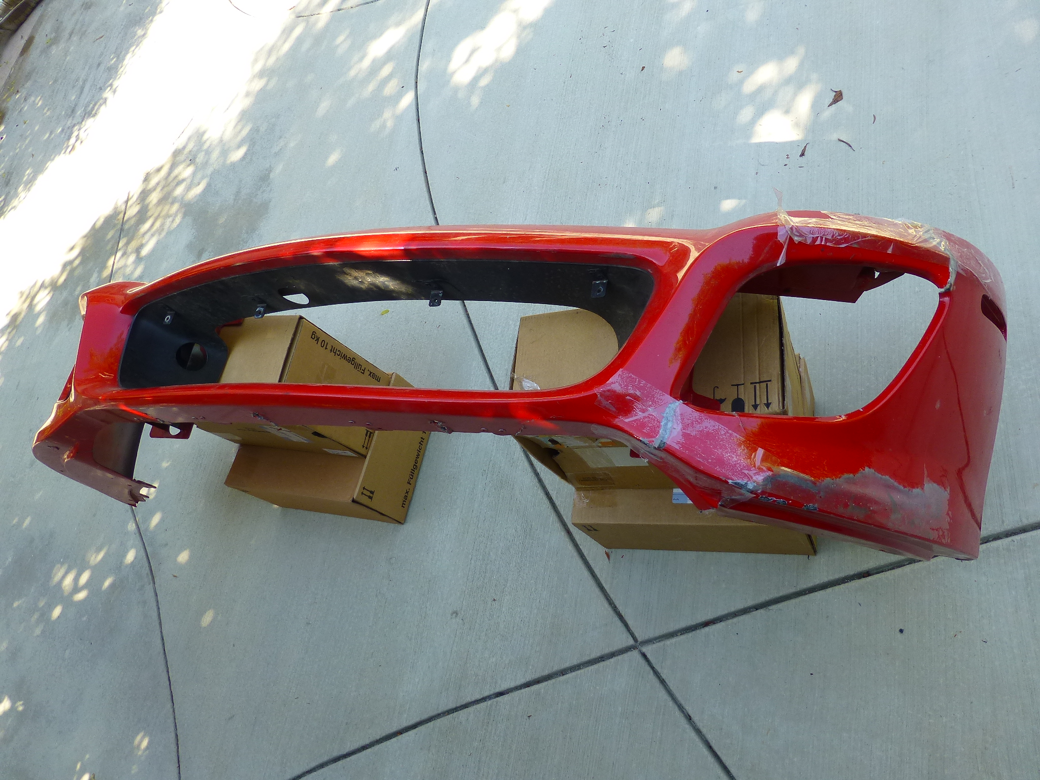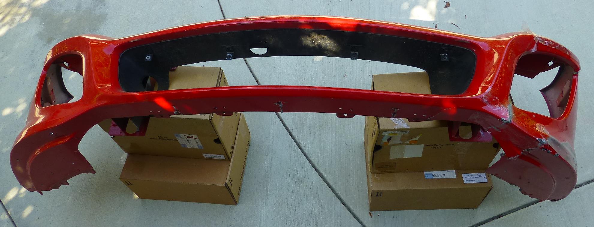 Front Bumper, Original, Needs some work, It has NO missing Main Bumper Surface Fragment, Only Missing Left Internal Bracket, Left Portion Is Totally Separated, We Taped Together to Make Pictures