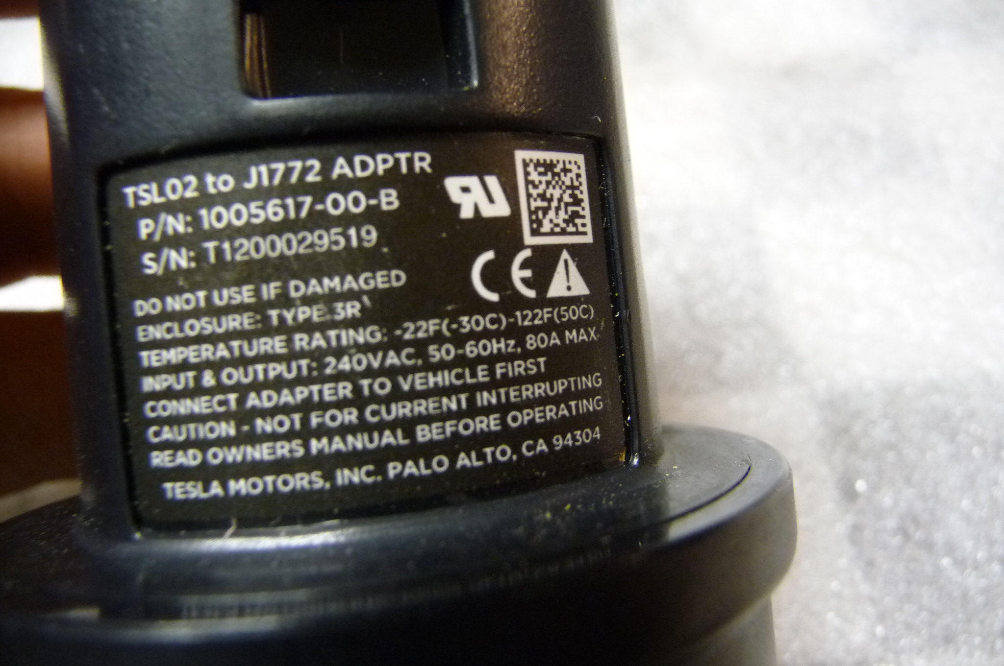Tesla Type:3R, TSL02 to J1772 EV ADPTR Charging Adapter 1005617-00-B OEM