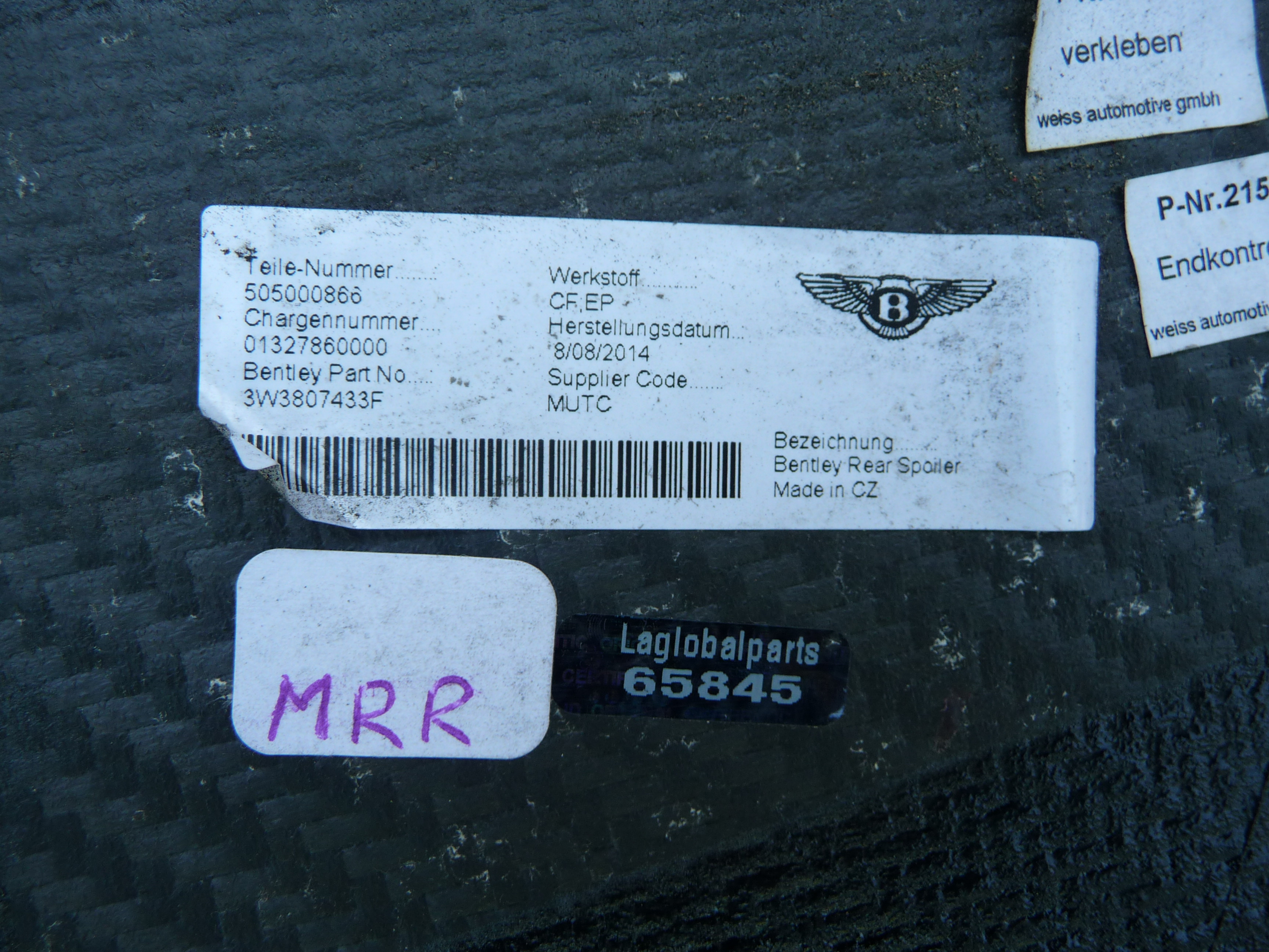 Bentley Continental GT Carbon Fiber Sill Extension Right Passenger 3W8071685A OE