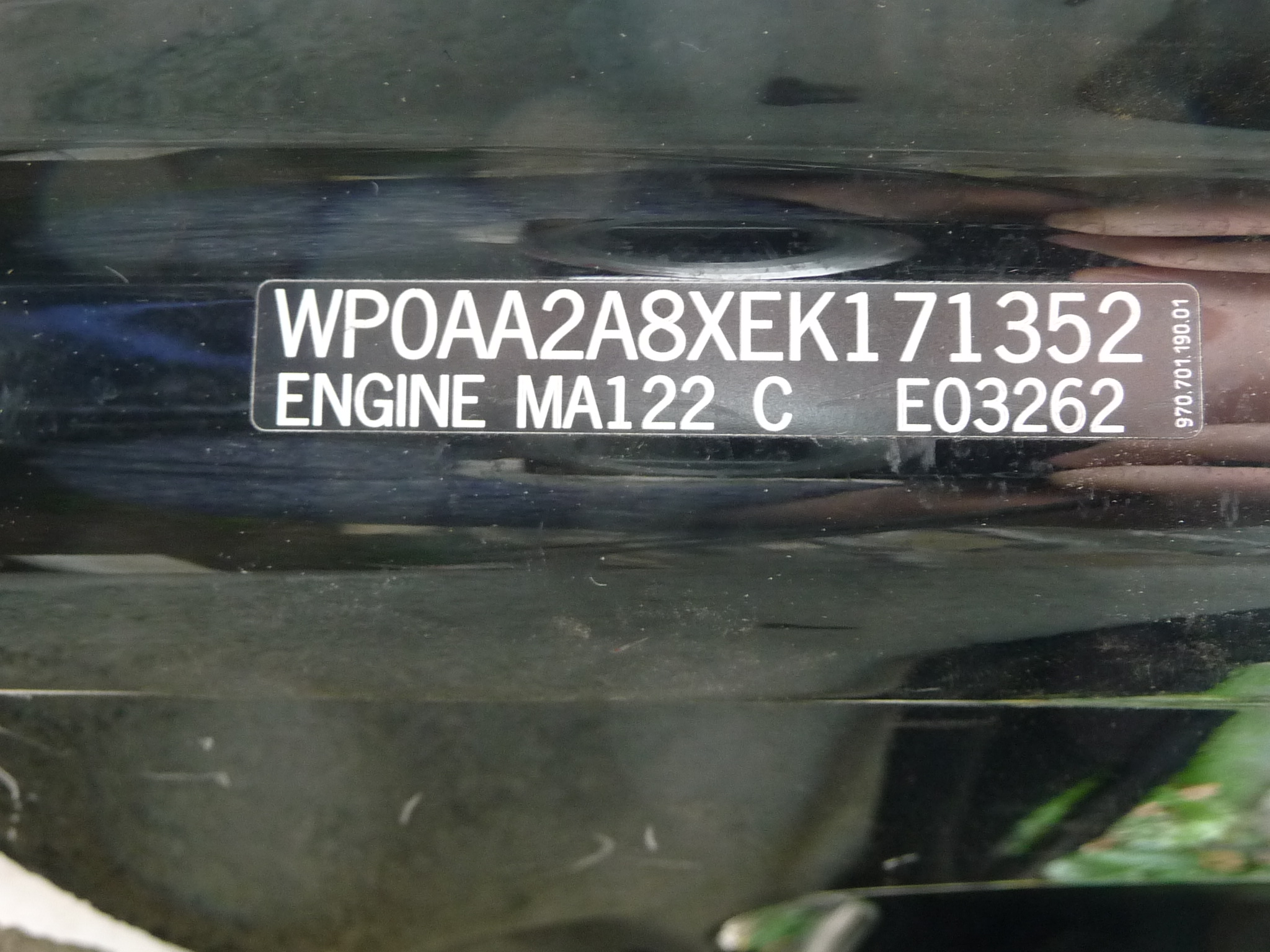 | Porsche | Boxster | Base Convertible 2-Door | 2.7L 2706CC 165Cu. In. H6 GAS DOHC Naturally Aspirated | 2014 |