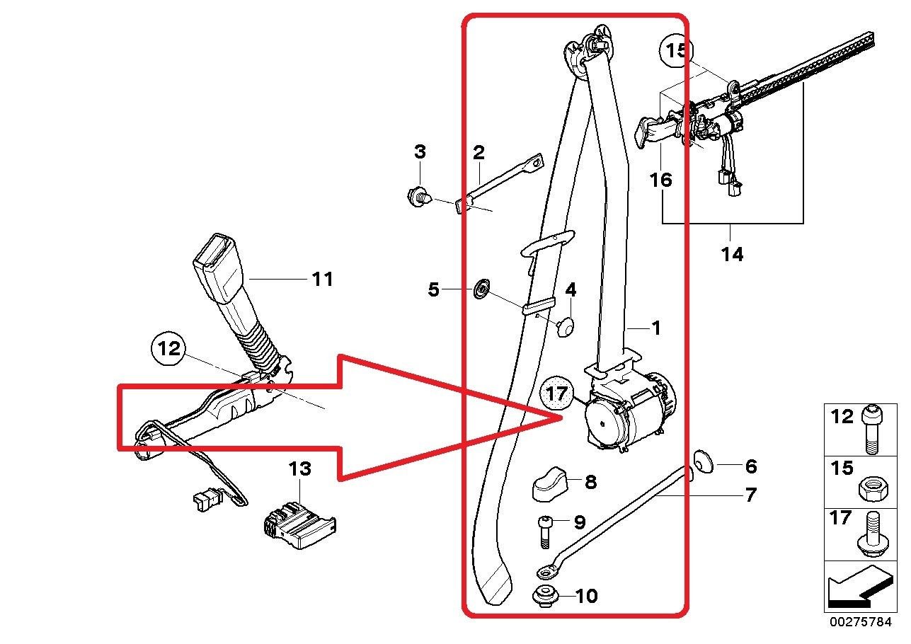BMW 3 Series M3 Front Left Upper Safety Seat Belt with Force Limiter 72117284361
