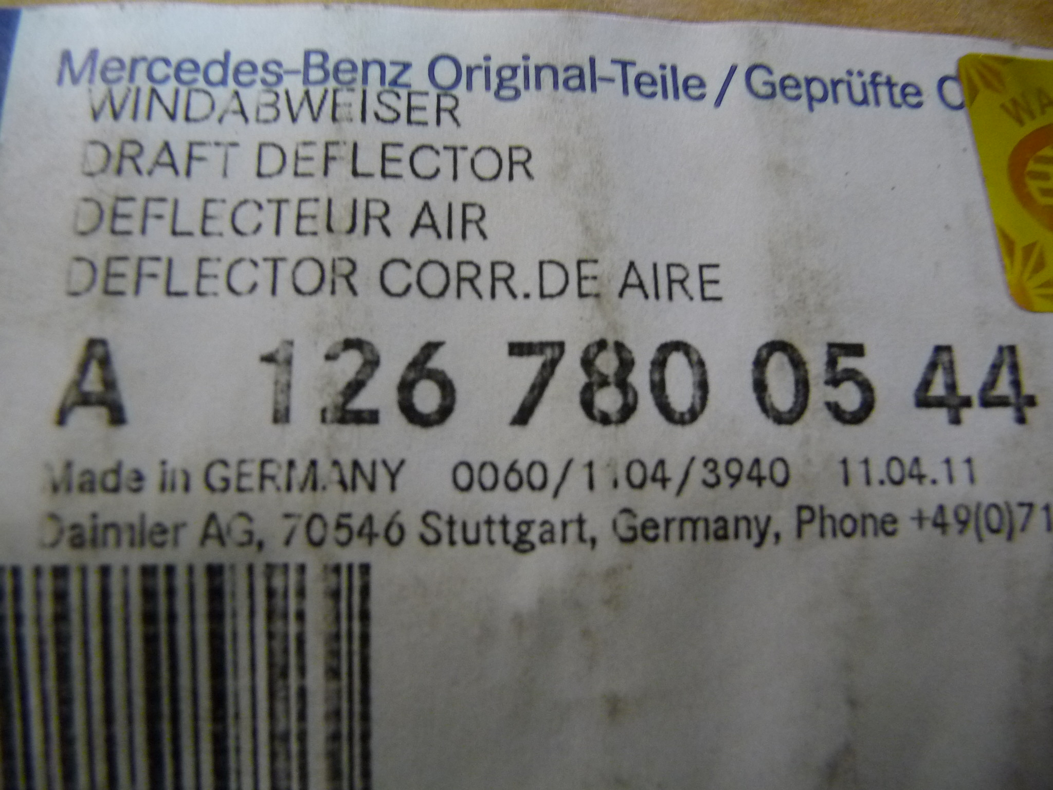 Mercedes Benz W126 560SEL Sunroof Wind Deflector A1267800544 OEM OE