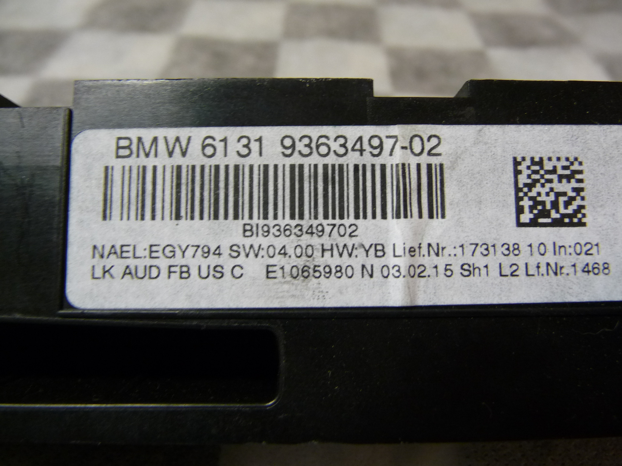 Part#: 61319363497 ; 6131 9363497 ; 61319261103 ; 61319323555 ; 61319348826