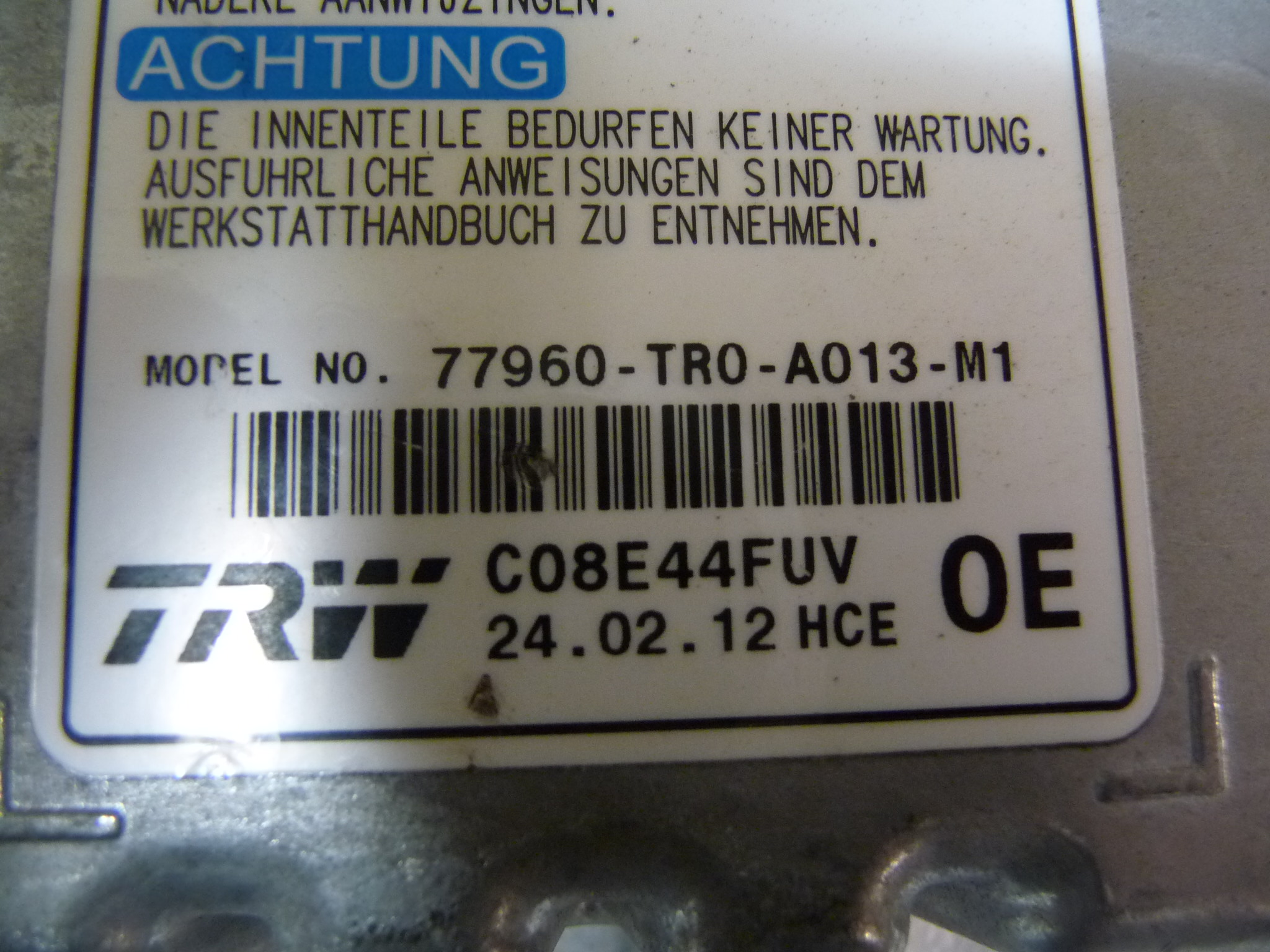 Part#: 77960-TR0-A013-M1 ; 77960TR0A013M1 ; 77960-TRO-A013-M1