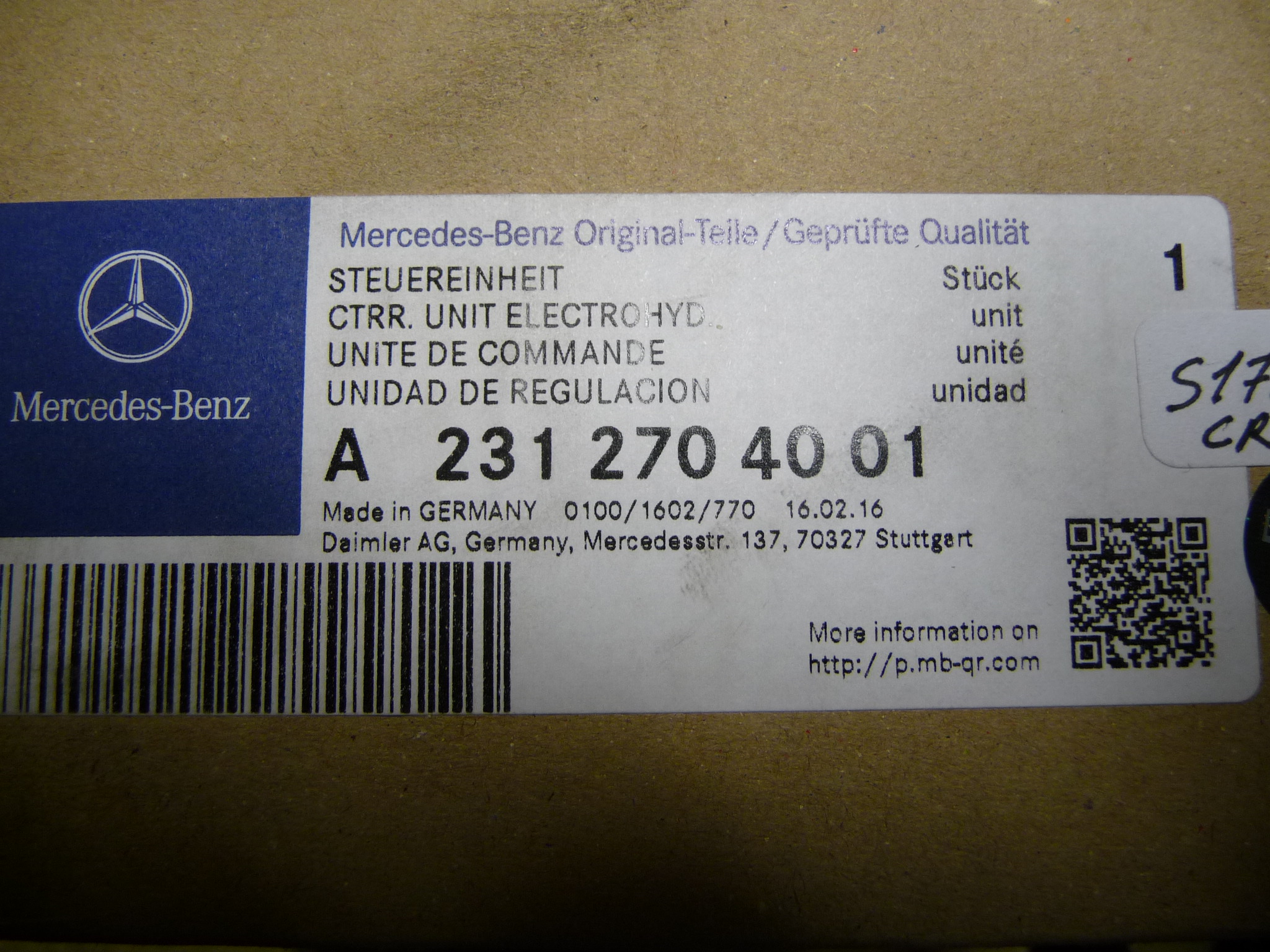 Mercedes Benz R231 SL550 Ctrr. Unit Electrohyd. Untested A2312704001 OEM OE