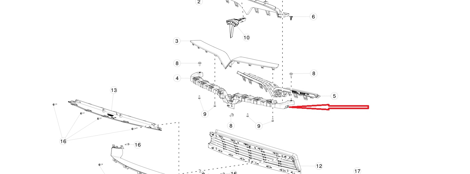 Tesla Model X Front Center Fascia Bracket Grille Support