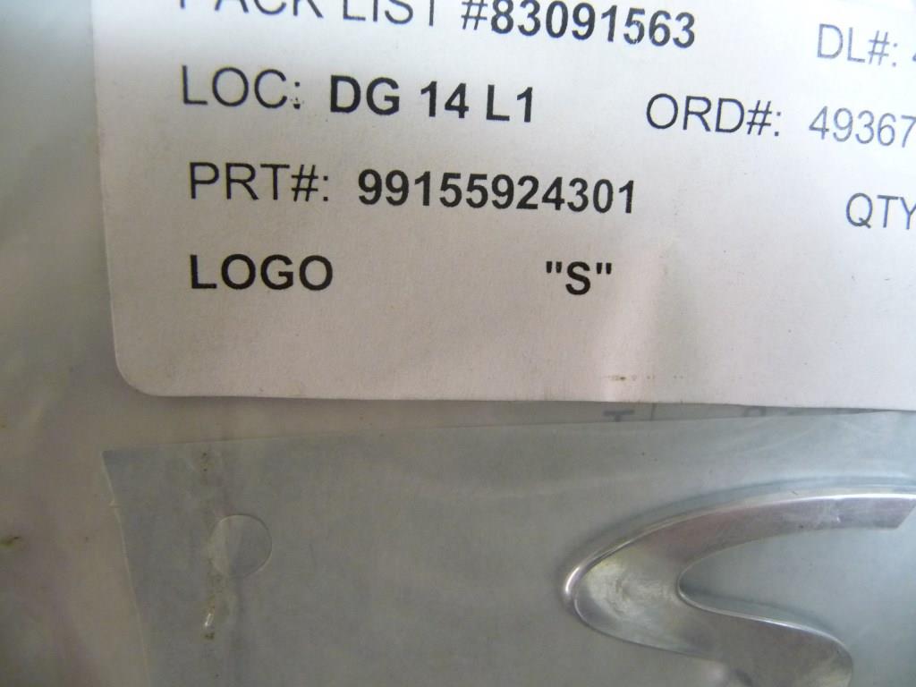 Porsche 911 Rear Bumper "S" Emblem Badge Nameplate 99155924301 OEM A1