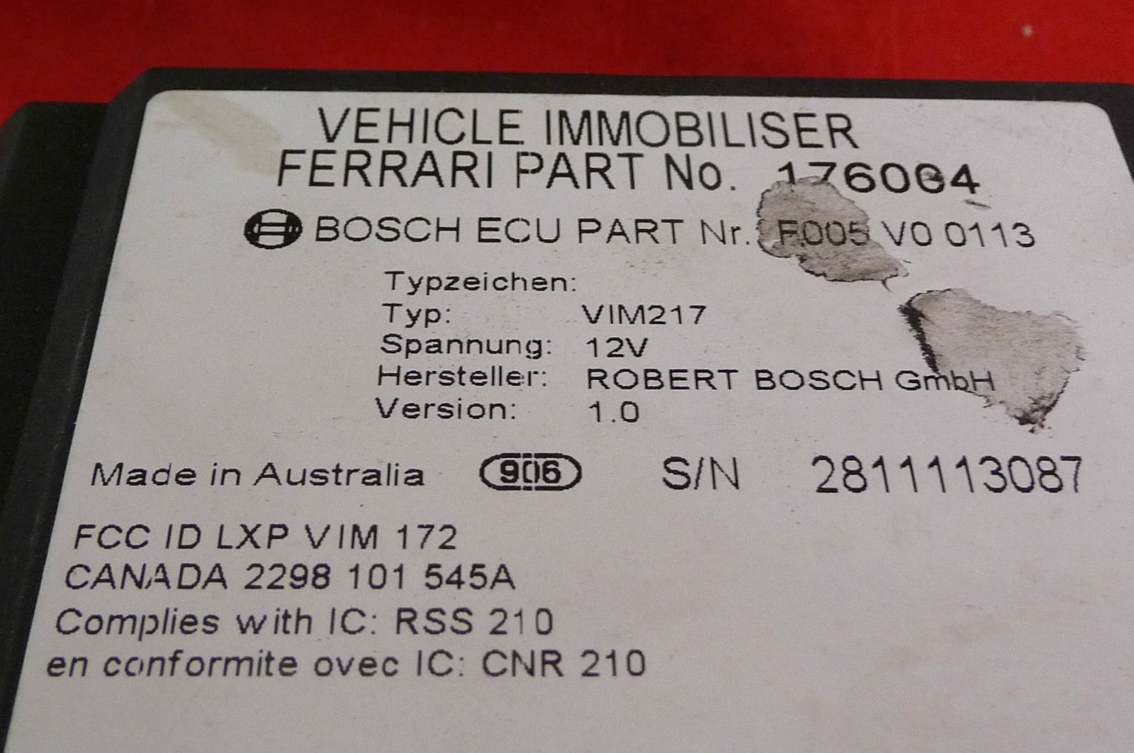 Ferrari Anti-Theft Electrical Boards Kit for 355 360 456M GT 456GT 550 575 575M OEM OE Good cosmetic condition, untested, not repairedNo Remote Control