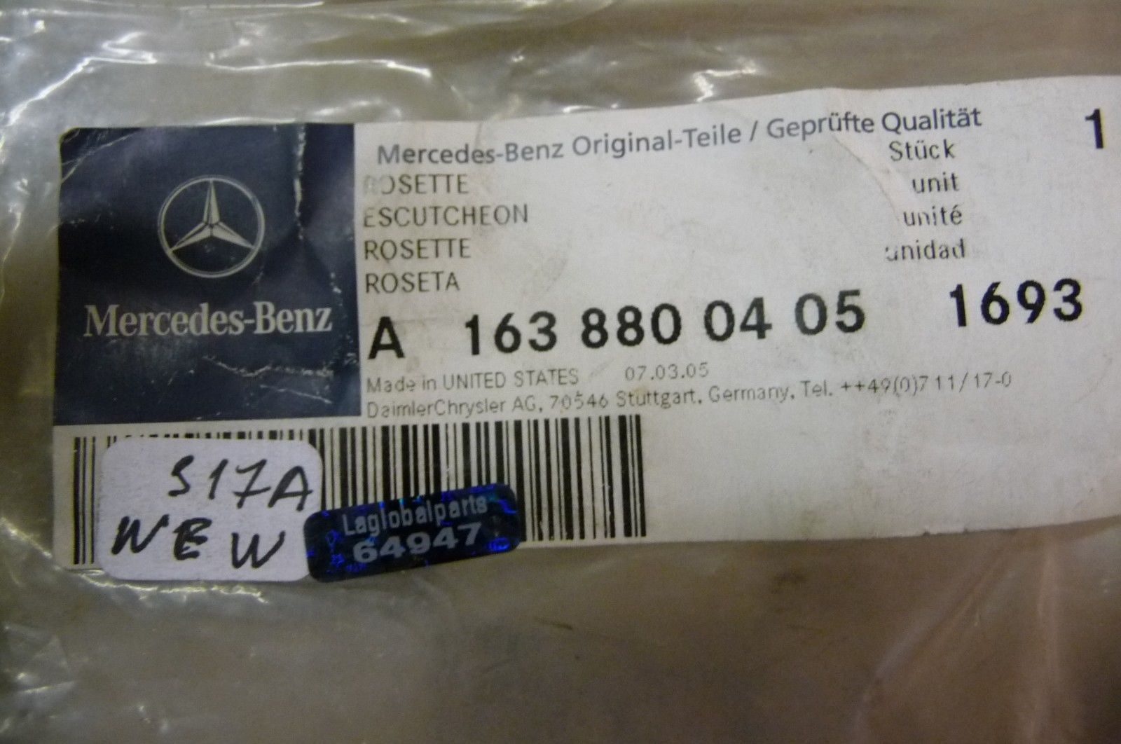 Part#: A 1638800405 1693 OEMOE