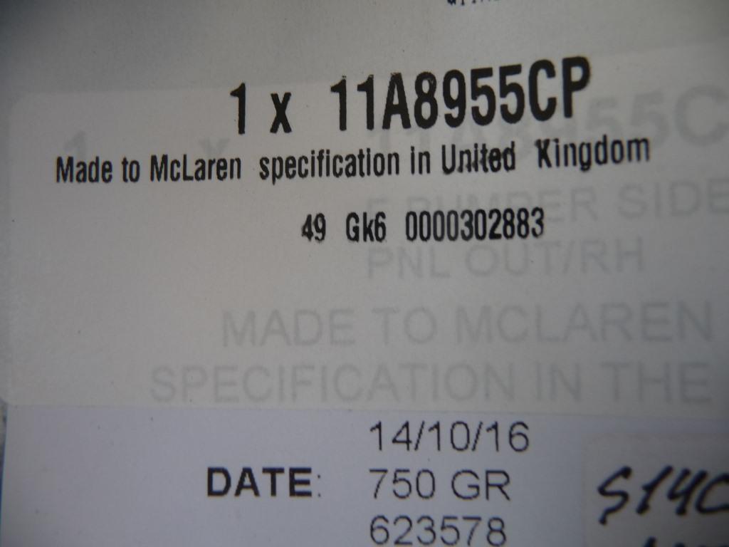 McLaren 650S Front Bumper Right Passenger Cover Panel 11A8955CP "NEW" OEM OE