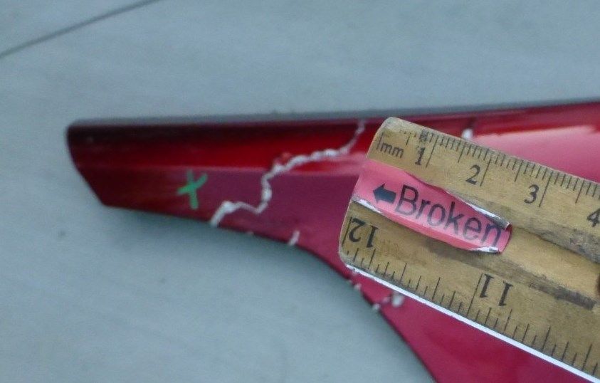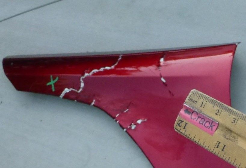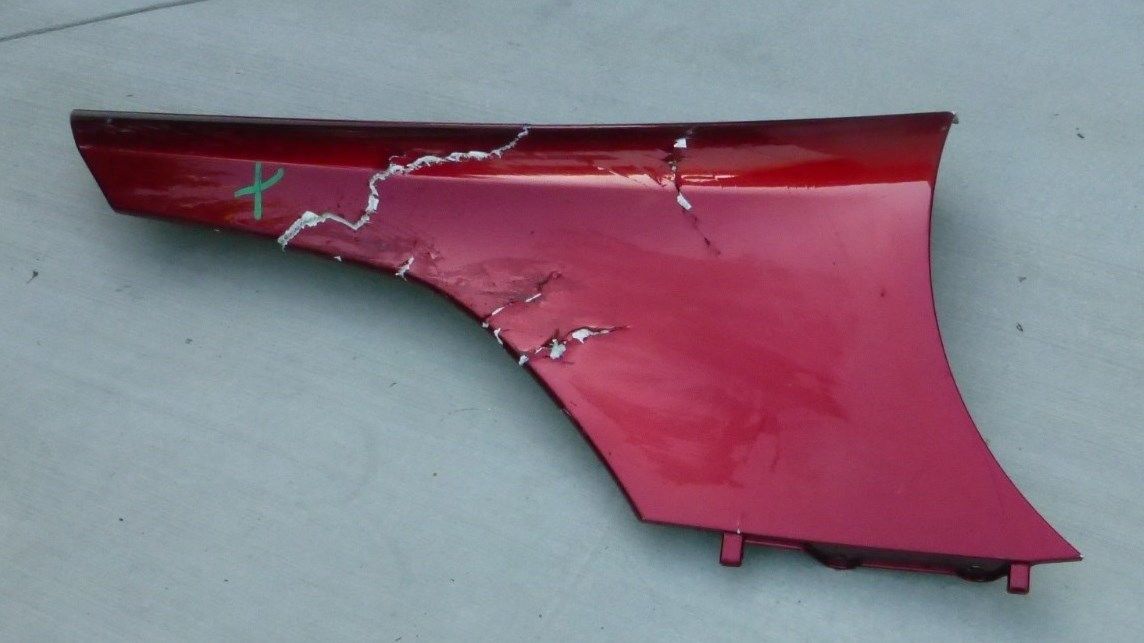 Has Cracks, missing fragment on inner side wheel arch bracket