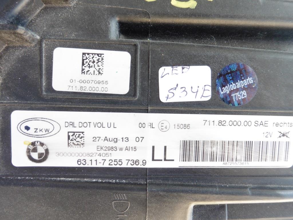 BMW 6 Series Gran Coupe F06 F12 F13 LED Headlight Assembly Right 63117255736 OEM 2013-2014 BMW 6 Series F06 F12 F13