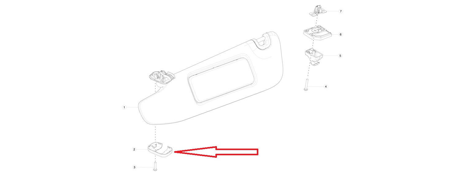 2012 2013 2014 2015 Tesla Model S Sun Visor Outer Cover Bracket - Textile