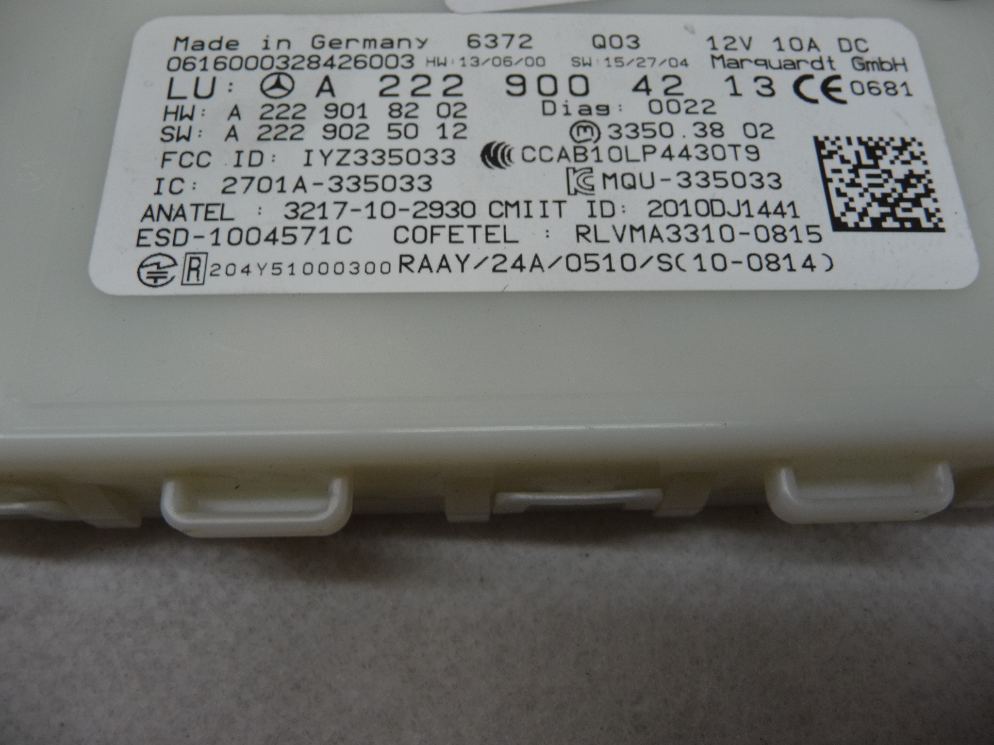 2016-2017 Mercedes Benz W205 C300 C350e SAM Control Unit A2059006822 OEM A1