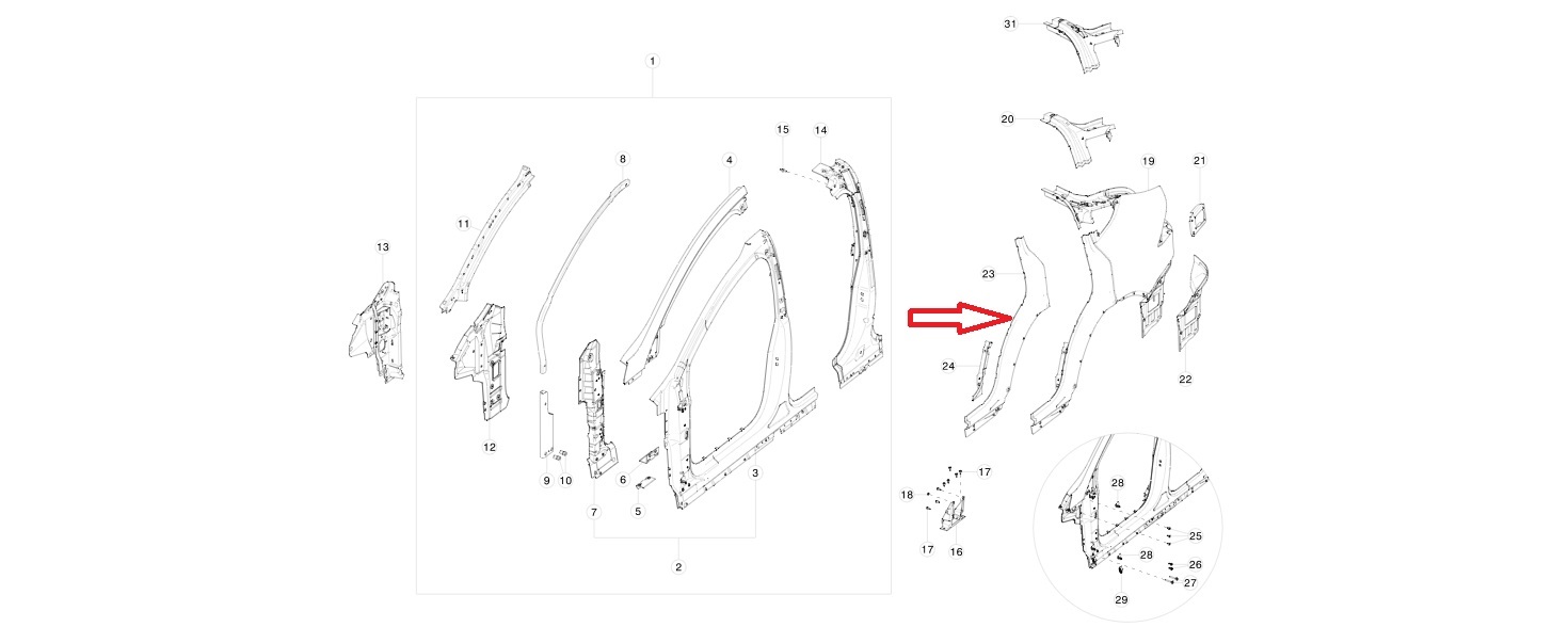 2016-2019 Tesla Model X Rear Left C Pillar Lower Extension