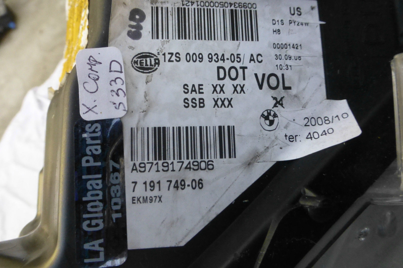 BMW Z4 Series E89 Adaptive Xenon Headlight, left driver side 63127228867 OEM OE