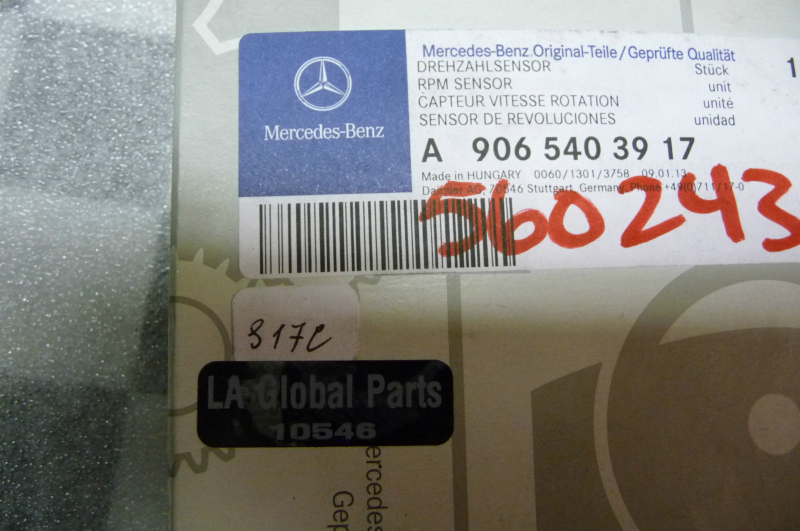 2012 Mercedes Benz Sprinter 2500 3500 Front ABS Speed Sensor 9065403917 OEM OE