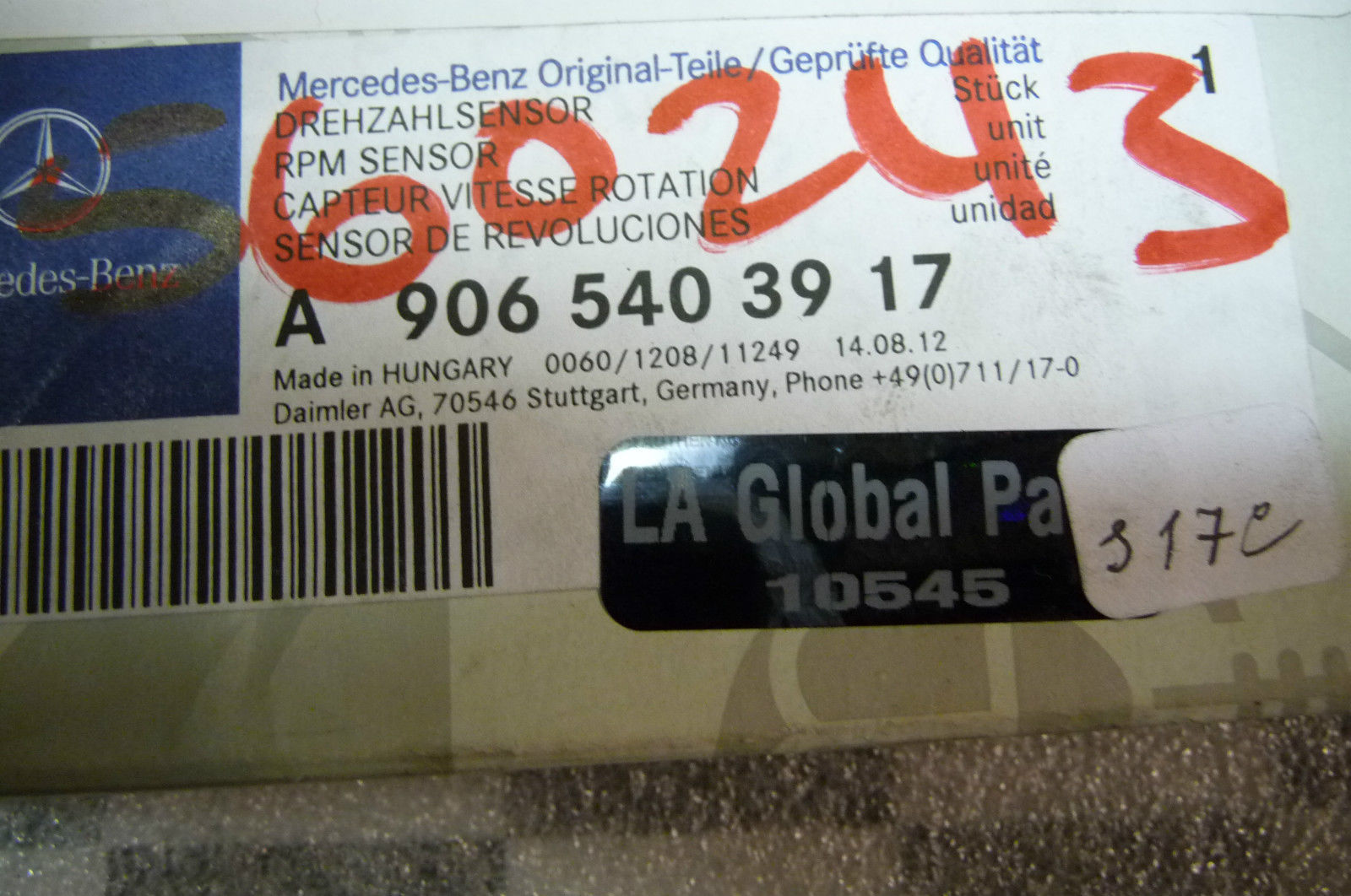 2012 Mercedes Benz Sprinter 2500 3500 Front ABS Speed Sensor Part#: 9065403917 OEM OE