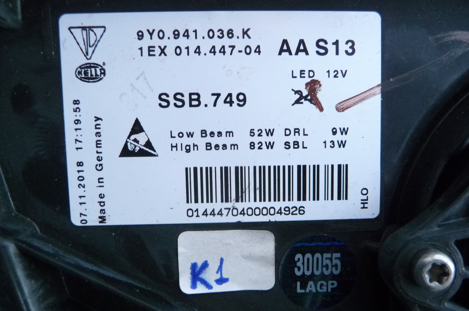 2019-2020 Porsche Cayenne Right Passenger Full LED Headlight 9Y0941036K OEM