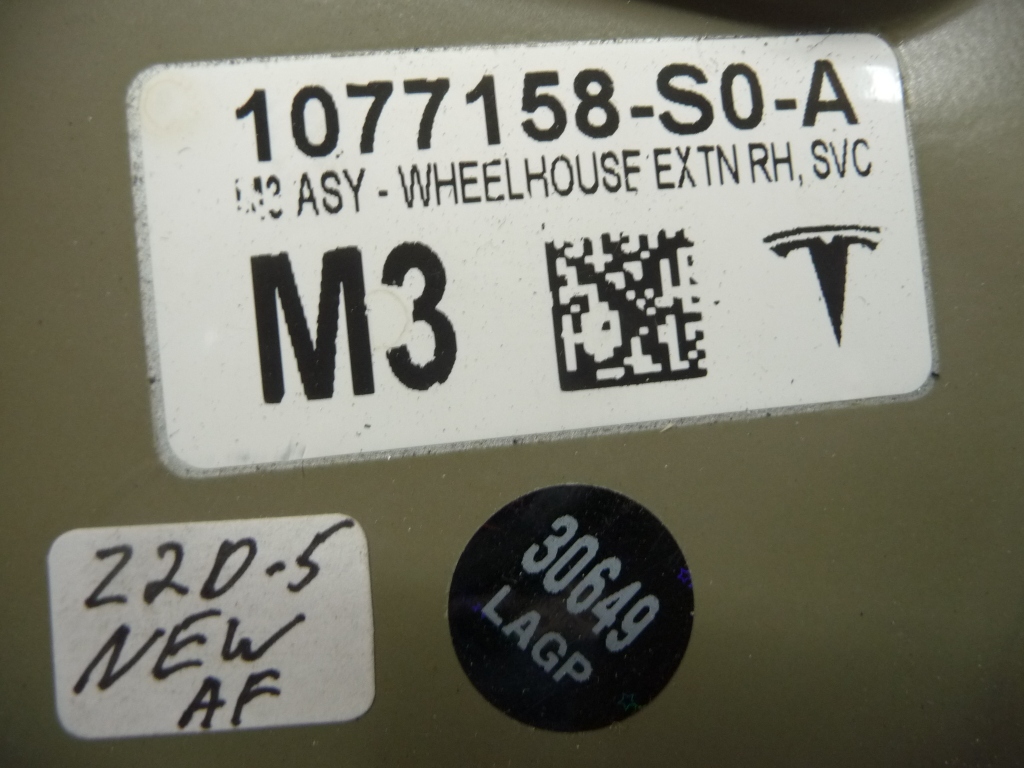 2016-2019 Tesla Model 3 Right Rear Wheelhouse Extension 1077158-S0-A OEM