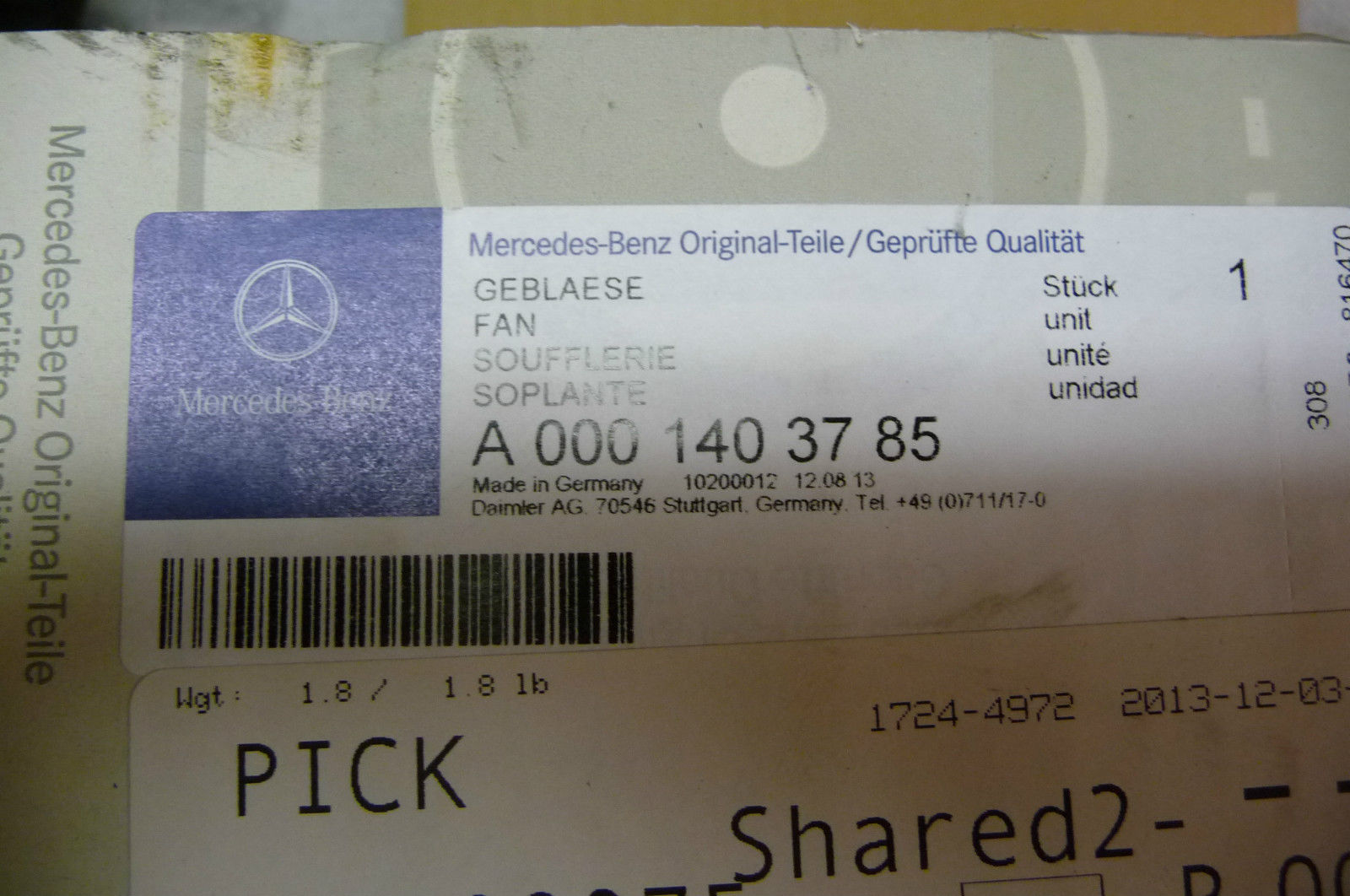 Part#: 0001403785; A0001403785