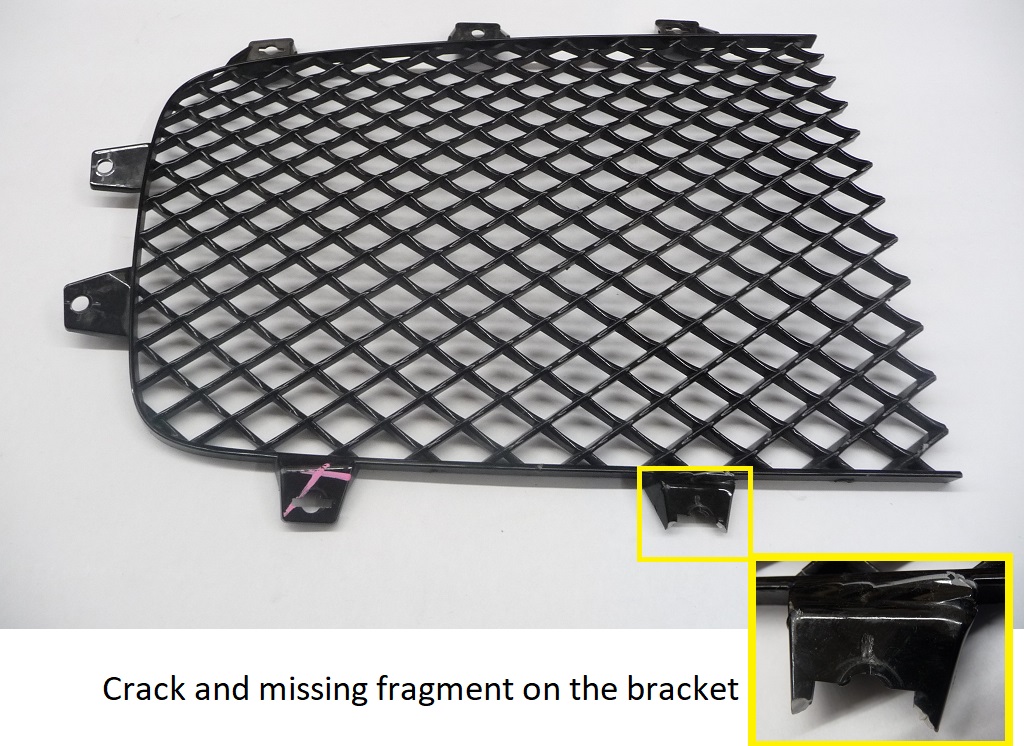 Used, Good surface, missing fragment on one inner bracket and crack (Can be installed. not visible from front)