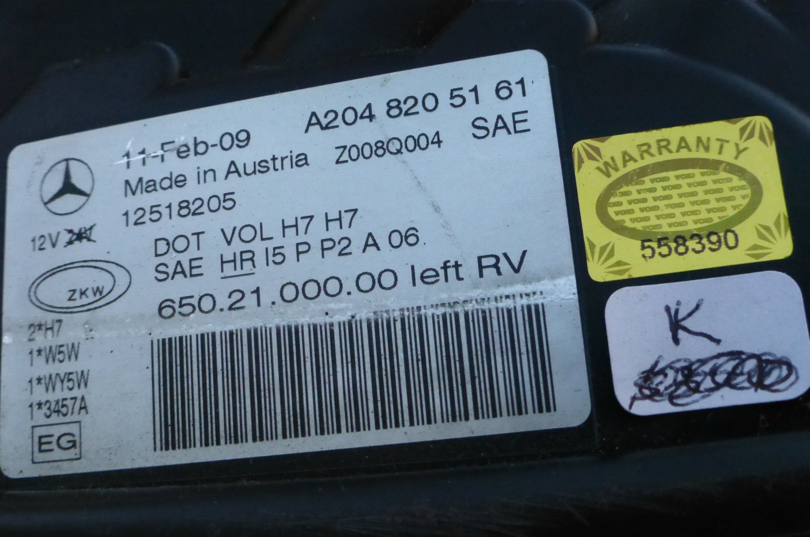 Mercedes Benz x204 GLK350 Halogen Headlight Head Light Lamp Left 2048205161 OEM