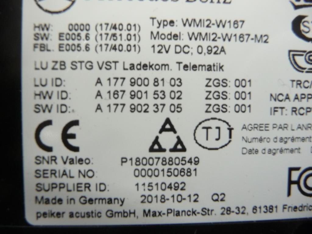 2019 Mercedes Benz W177 Telematics Telephone Control Unit A1779008103 OEM A1