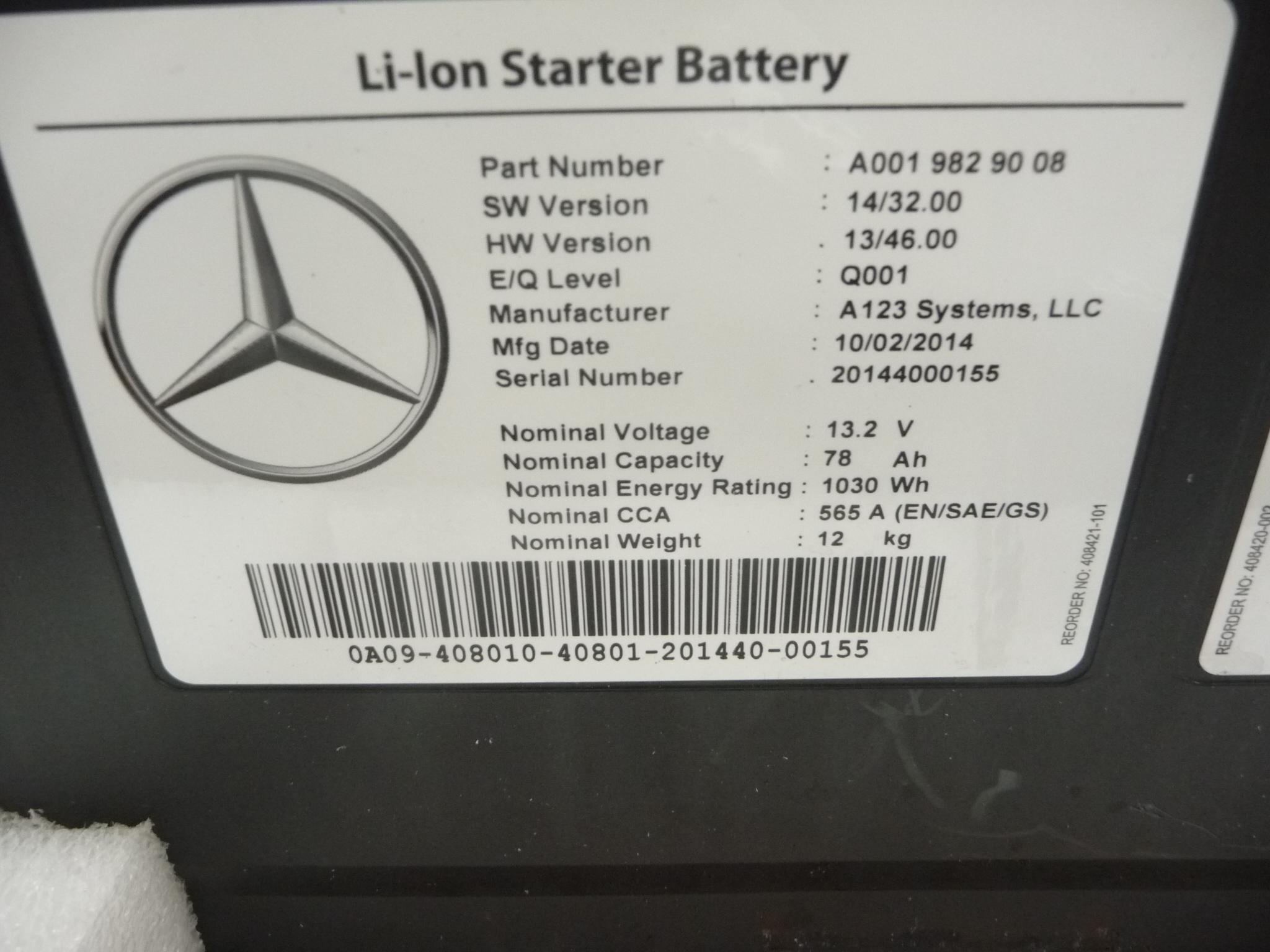 2015-2020 Mercedes Benz C63 AMG GLC300 S550 Starter Battery A0019829008 OEM A1