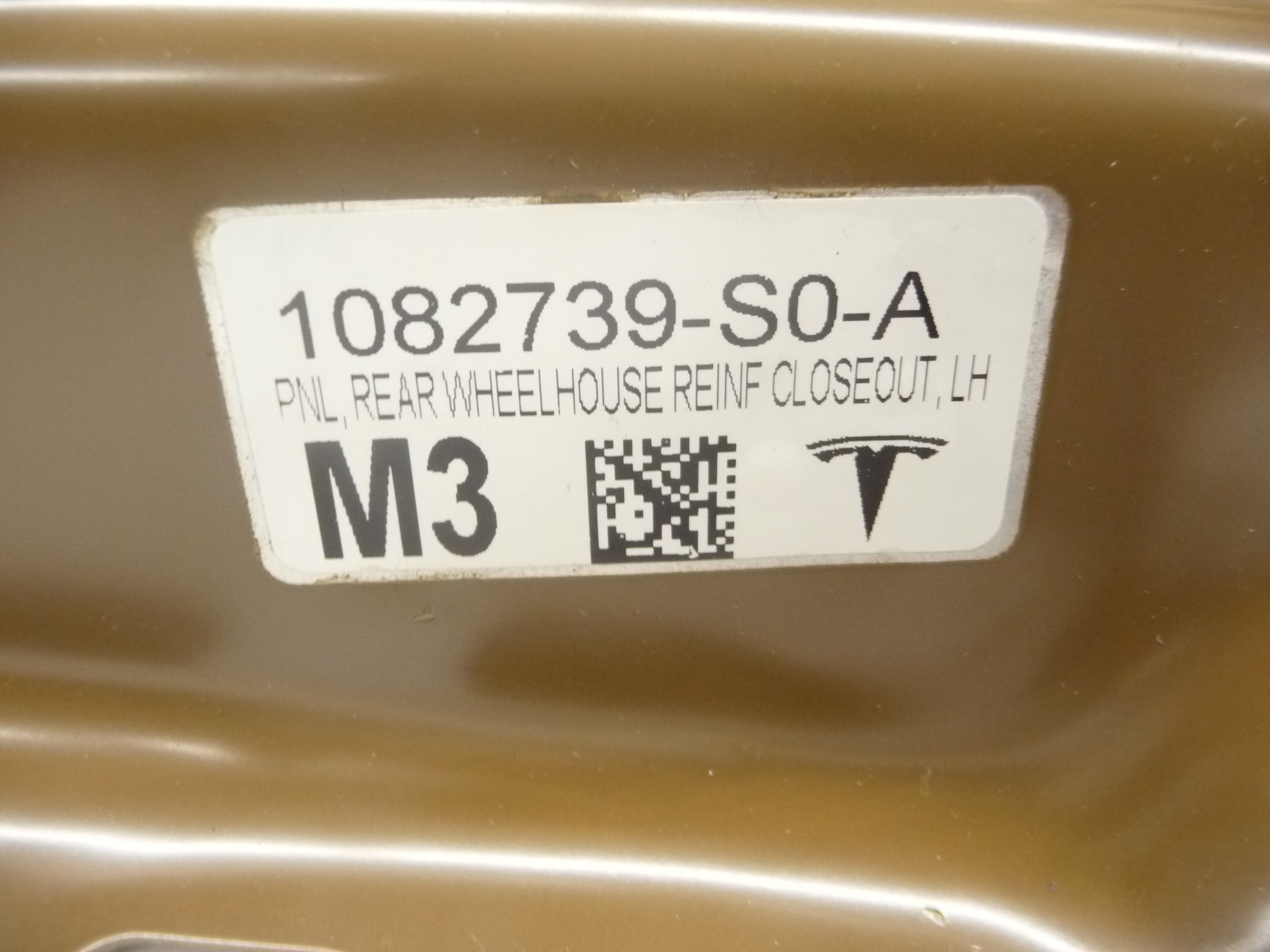 17-20 Tesla Model 3 Rear Wheelhouse Reinforcement Panel LH 1082739-S0-A OEM A1
