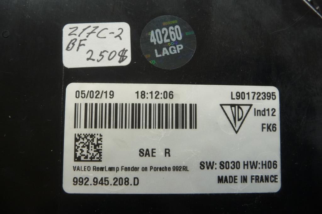2020 Porsche 911 Carrera Rear Right Passenger Side Tail Light 992945208E OEM A1