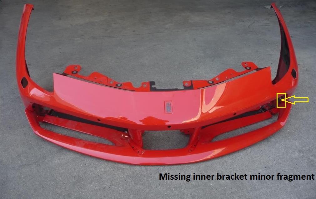 Left Bumper to Spoiler Tab / Bracket has missing fragment. Please check our all original pictures