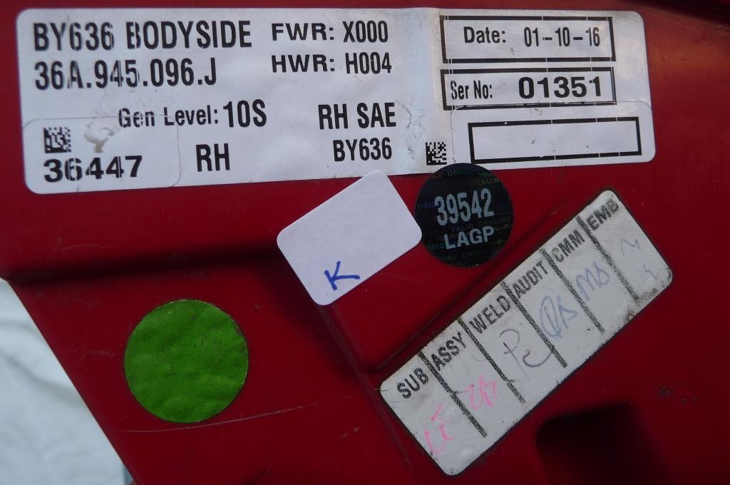 16-18 Bentley Bentayga BY636 Front Right RH Fender Wing Cover 36A821018F OEM H2