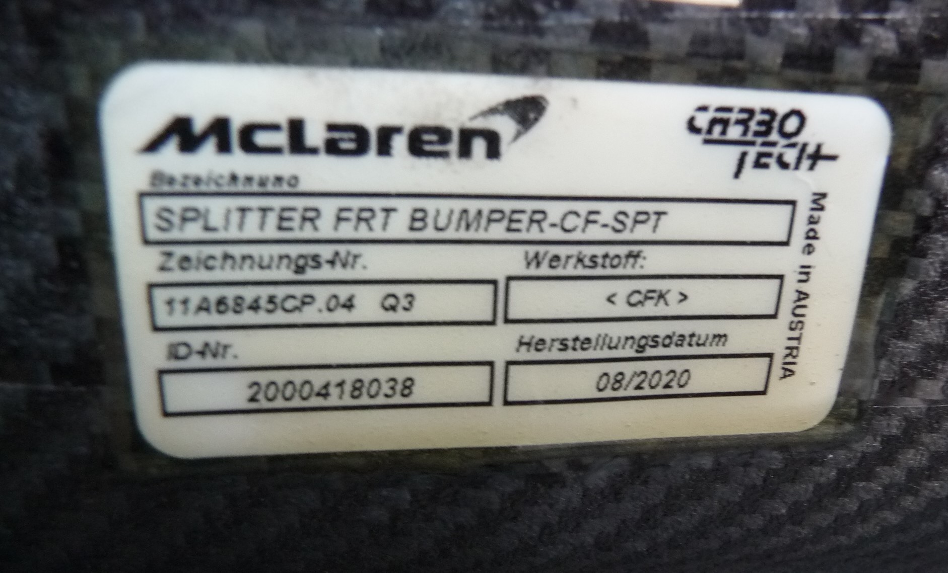 15-16 McLaren 650S Front Bumper Carbon Fiber Splitter Spoiler 11A6845CP C+ OEM