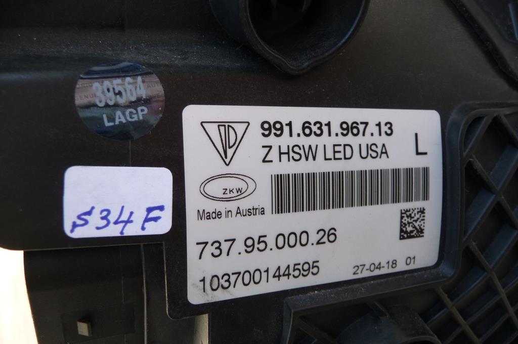 15-16 Porsche 911 Left LED HSW Front Headlight Lamp 99163196713 OE For Parts