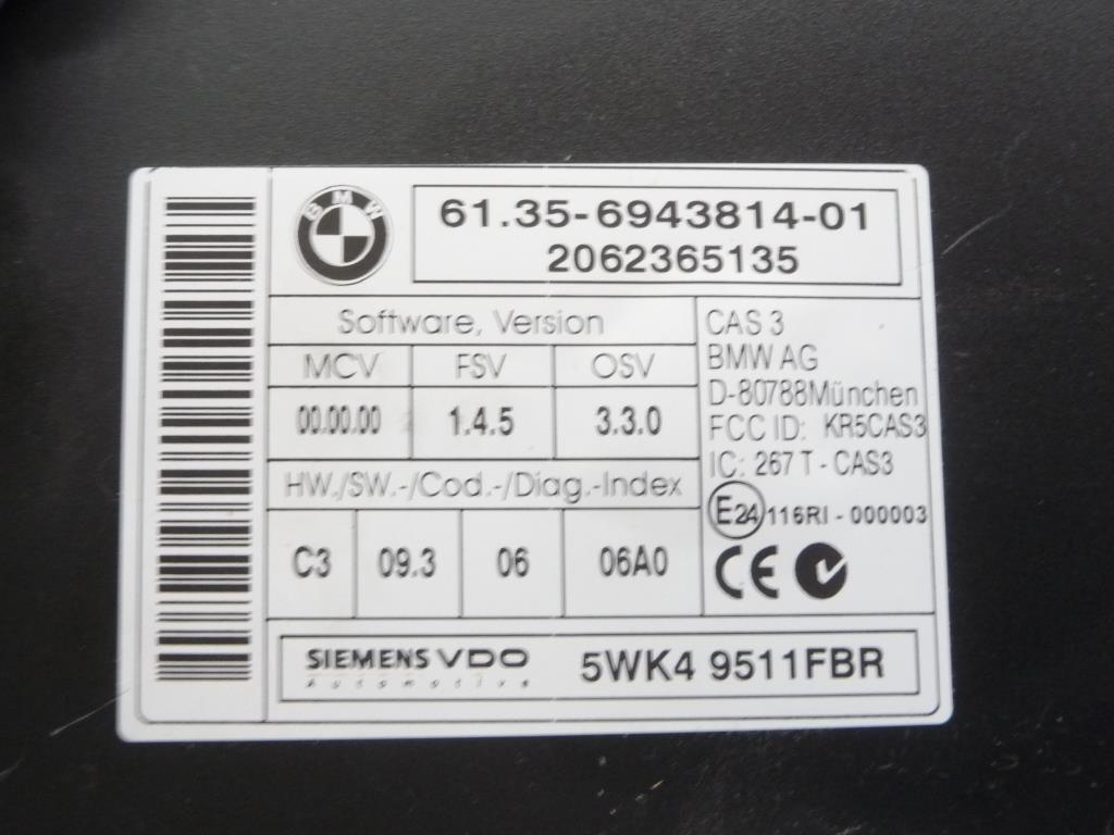 2004-2010 BMW E90 E92 E60 E61 E63 E64 Control Unit CAS 61356943814 OEM A1