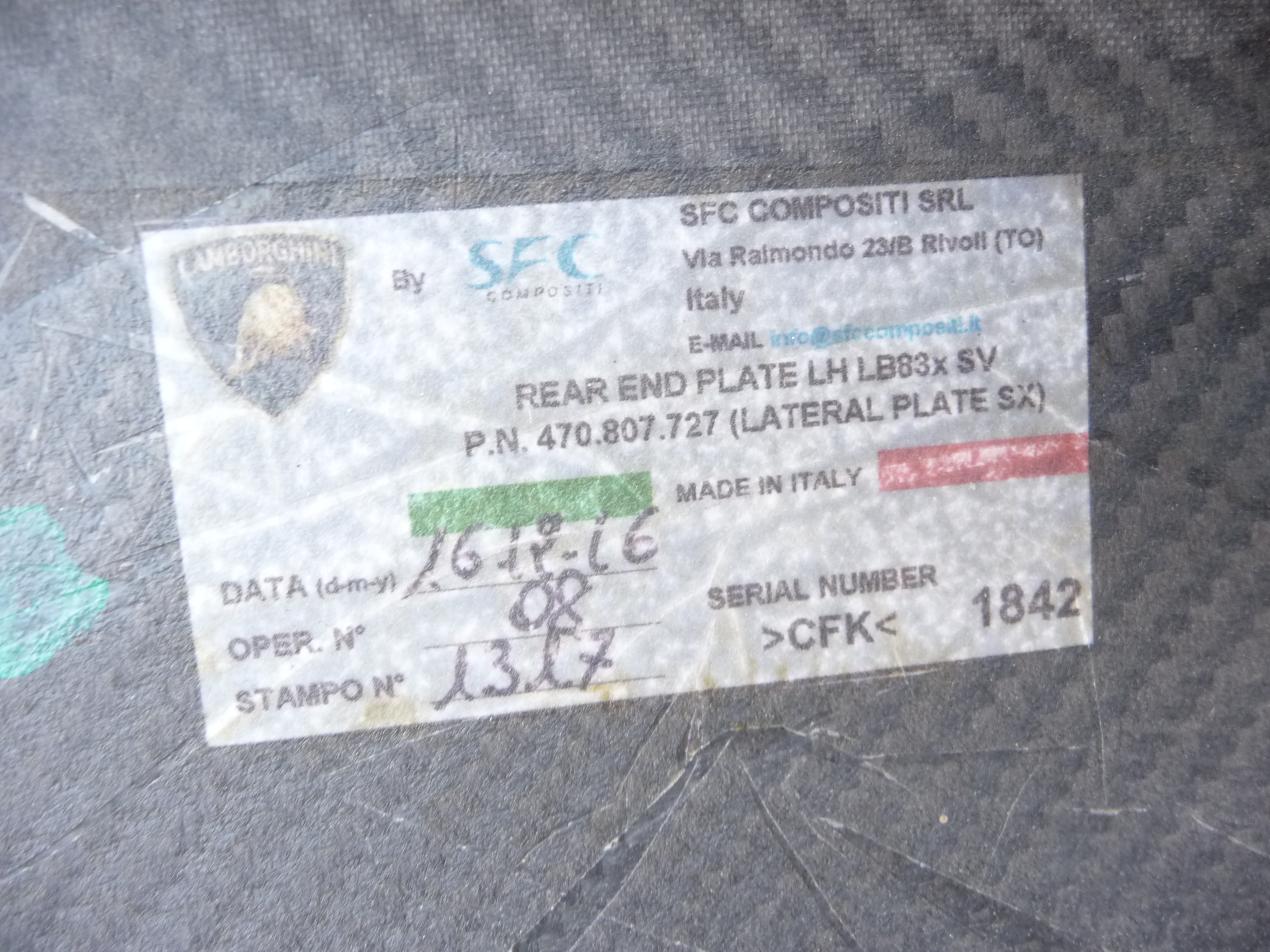 Aventador LP750 SV Coupe Roadster X Frame Rear 470814587D Carbon Fiber OEM