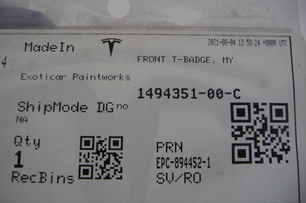 2020-2022 Tesla Model Y Front Emblem T-Badge 1494351-00-C OEM A1