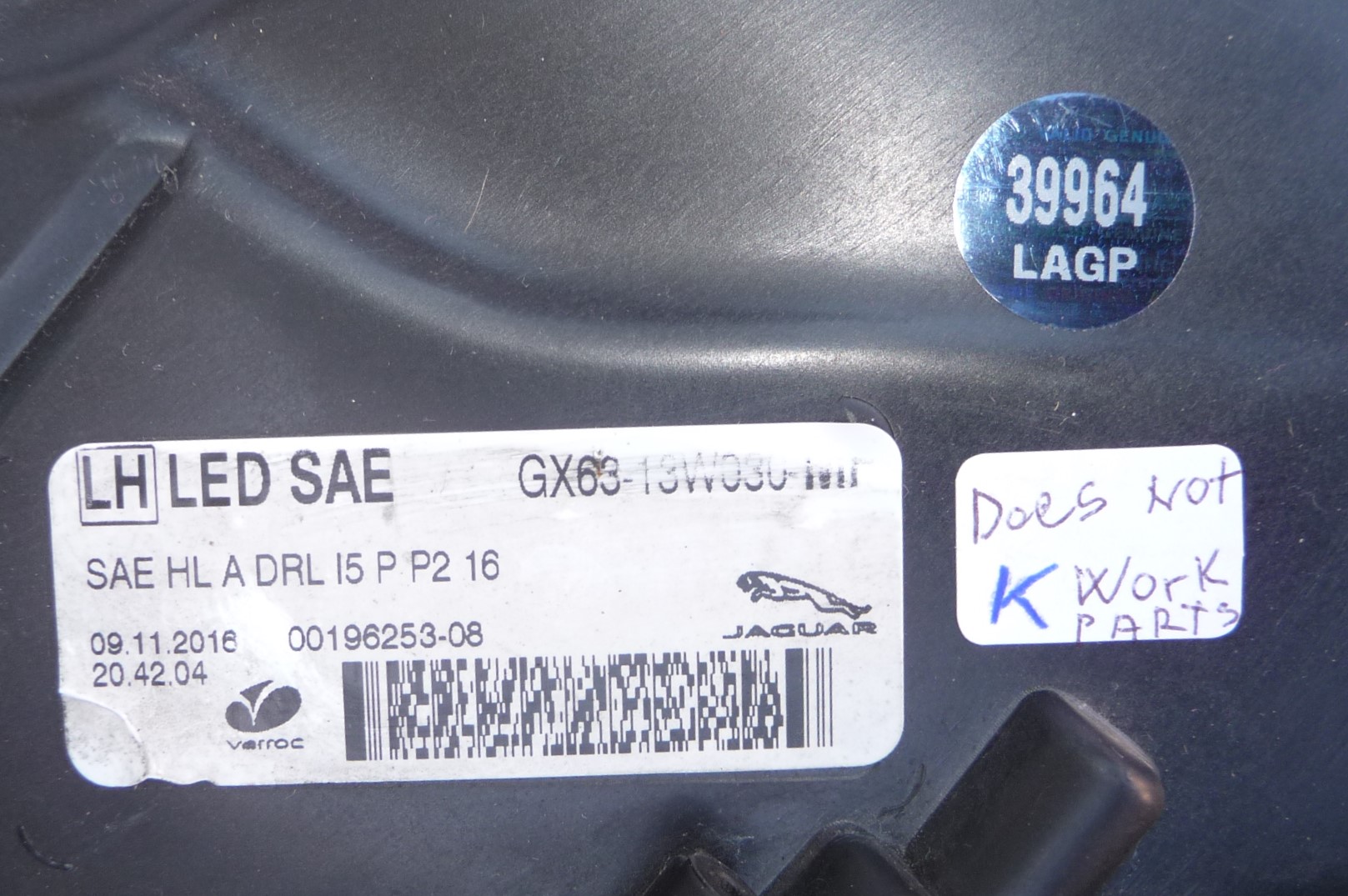 16-18 Jaguar F-Pace Driver Left Full LED Headlight GX63-13W030-MF OE NON Working