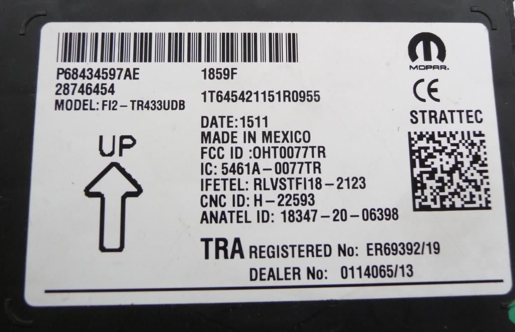 2021 Ram 1500 Wireless Control Module Receiver 68434597AE OEM A1